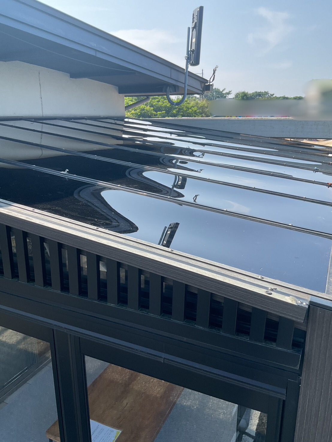 今回、インティコチャのガーデンルームの屋根をブラックポリカに変更しました!
