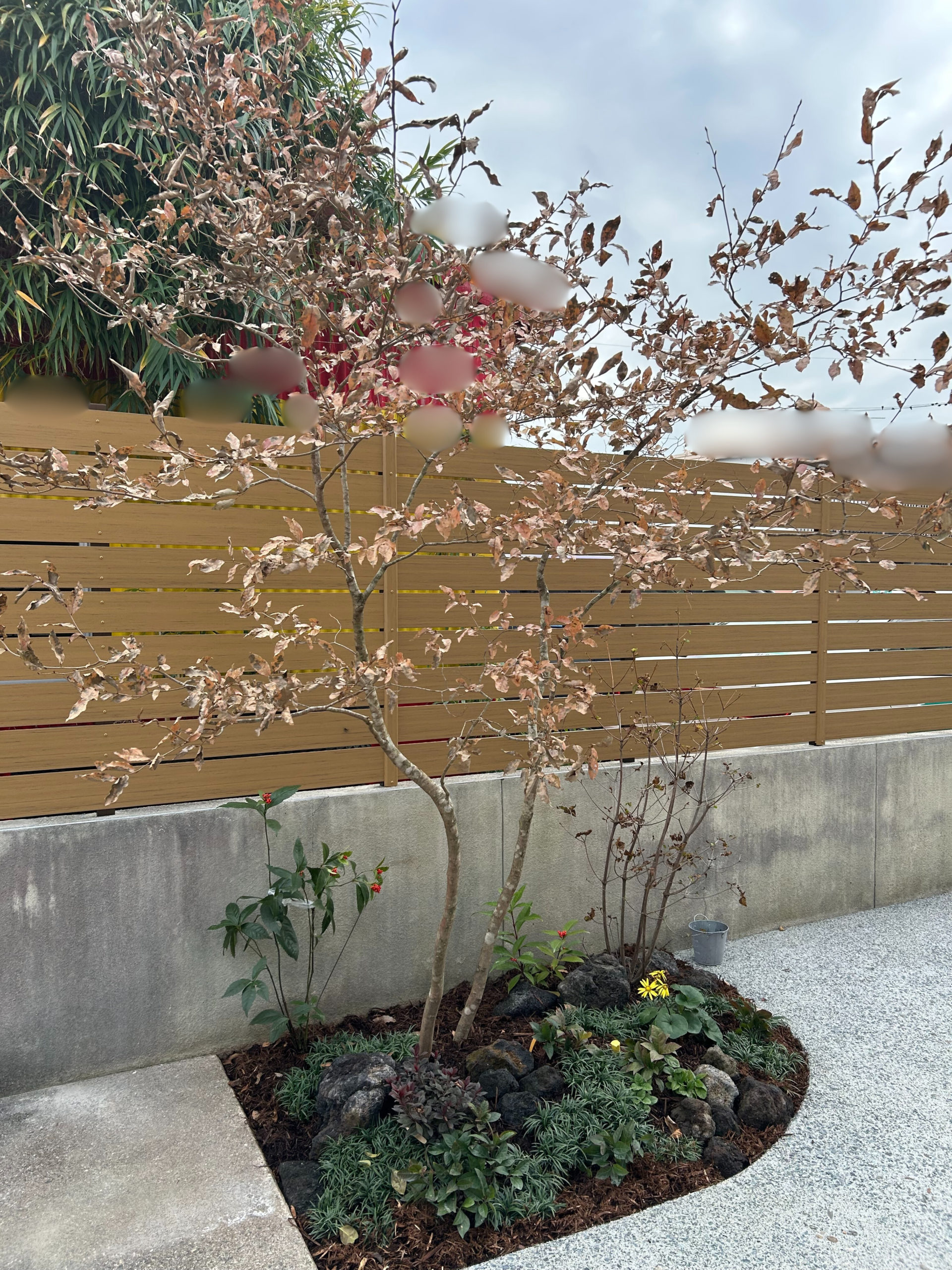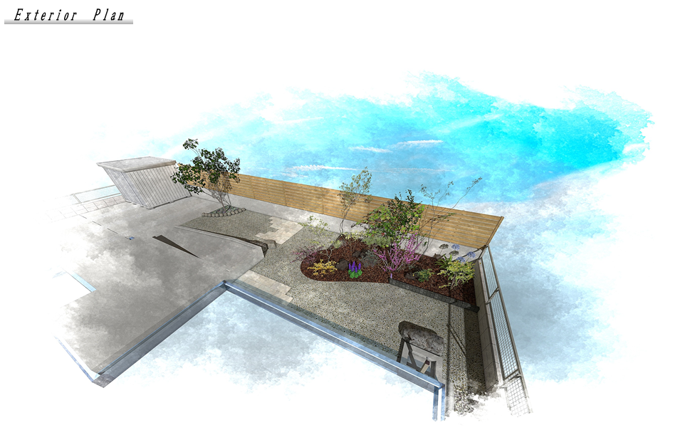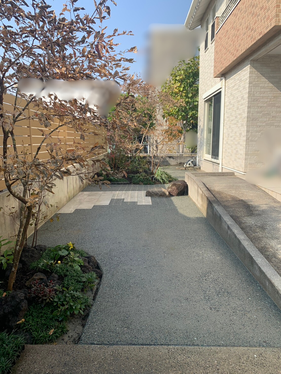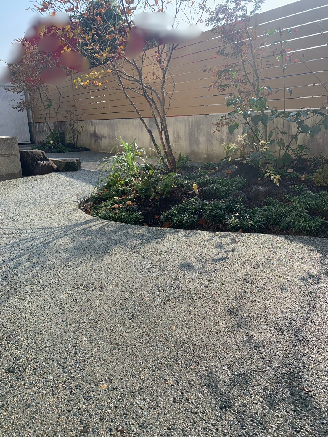 今回のお庭づくりでは、素材感や質感にこだわり、落ち着きと温かみのある空間を目指しました。