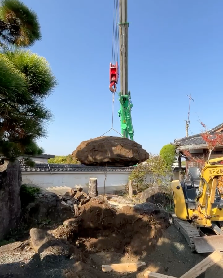 巨大な石がゆっくり宙に浮かび上がる瞬間は特に慎重に作業を進め、安全に撤去しました。
