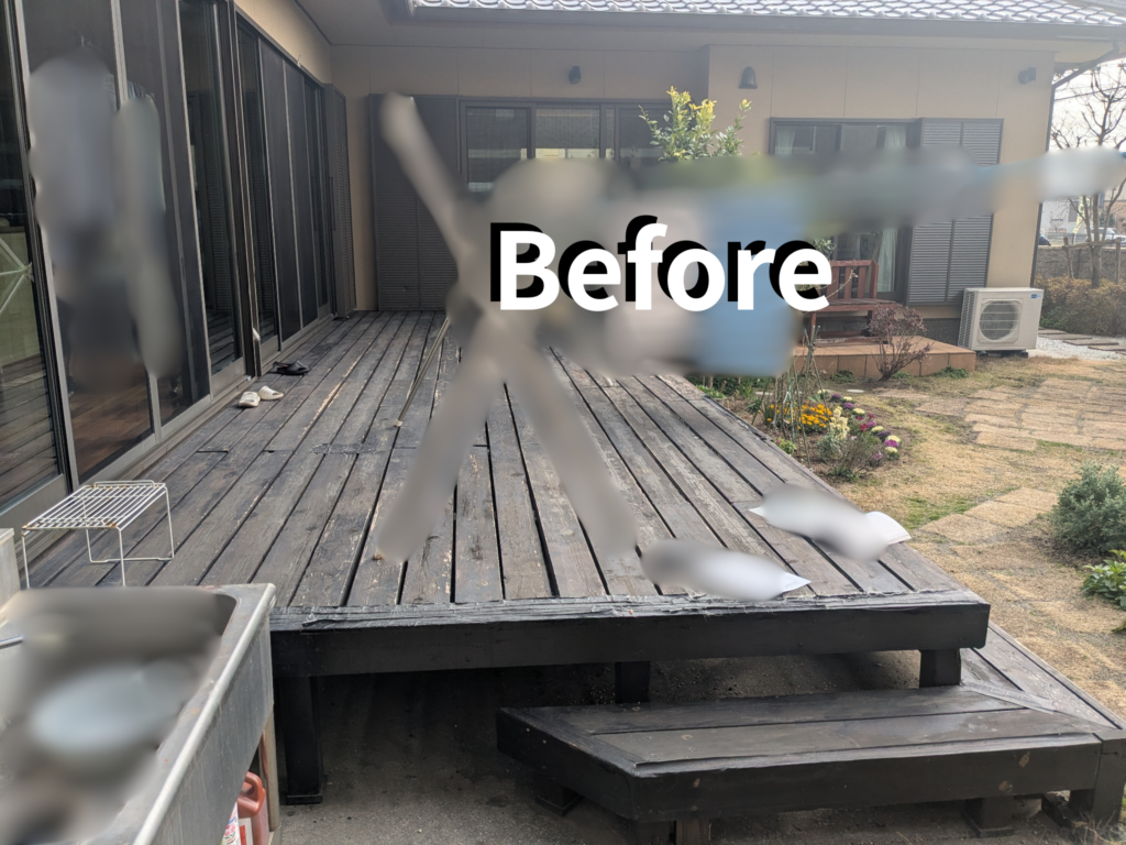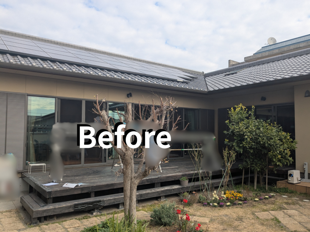 今回は、経年劣化した天然木デッキのリガーデン工事をご紹介します