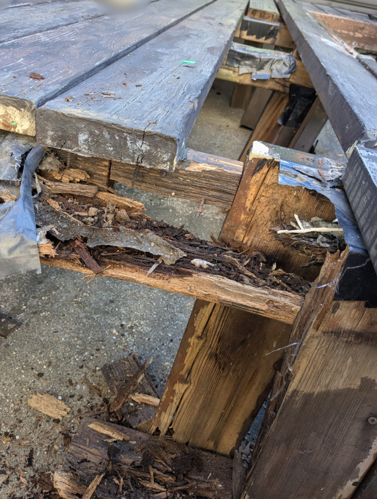 既存のウッドデッキは天然木だったのですが、触れるとボロッと崩れてしまうほど傷みが進んでおり、安全面でも不安がある状態でした。